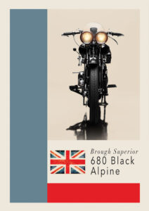 “The popular, medium-weight, low-priced B.S.,” a 1934 Brough Superior brochure says of the 680 model. “The steering, cornering, riding position and road-holding, not to mention the quality of workmanship and material make these machines the most popular of the ‘Brough Superior’ range, and at the price, they undoubtedly offer the world’s best value in sporting motor cycles. These models are fast becoming the popular choice of the motorcyclist who prefers the SS100 in a smaller capacity.”
