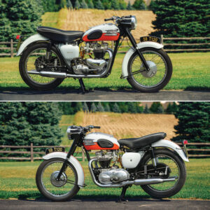 According to Brooke, American distributors Triumph Corporation (East Coast TriCor) and Johnson Motors (West Coast JoMo) were well aware in ’58 that there was demand for a factory-built twin carburetor model. Letters were written to Triumph expressing interest in such a machine. “By all accounts,” Brooke wrote, “(Triumph designer) Edward Turner was hesitant about offering a twin-carb 650, and his reluctance then was not as difficult to understand as it may seem today.”