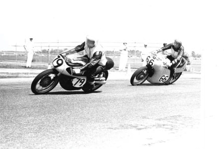 Buddy and 44113 were a relentless combination for the remainder of the 1966 road-race schedule. On May 15 at Carlsbad, California, he crashed, breaking his collarbone. But he won a month later at twisty, hilly Loudon, with 44113 converted to what Rivard called “the Laconia set-up”: sans fairing and oil cooler, with western handlebar fitted. At Greenwood, Iowa, on August 7, Elmore placed ninth, riding in pain with a separated shoulder. Back at Carlsbad on September 18, he finished eighth.