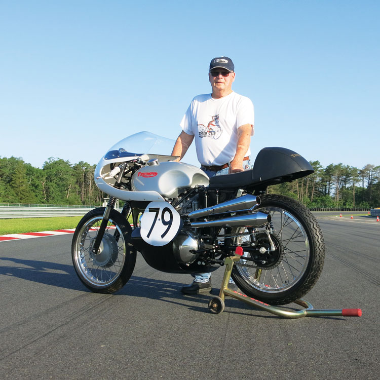 “So, you’ve found One-One-Three!” replied the soft-spoken Rivard. Like many of us who have never forgotten the serial number of a special bike we’ve owned, Rivard has had the motor and frame number 44113 burned into his brain for 59 years. As senior mechanic at The Triumph Corporation in Baltimore from 1963 to 1973, Rivard built and rebuilt dozens of competition machines for TriCor’s star riders, including Elmore, Larry Palmgren, and scrambles legend Charlie Vincent. During the 1966 AMA racing season, he was responsible for Elmore’s road racer — one of six new T100R 500cc twins built at Triumph’s Meriden factory that year and Buddy’s winning ride in the Daytona 200 and Loudon 100-miler.
