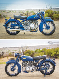 Vincents have always been at the upper end of the motorcycle price range, and between the end of World War II and the shutdown of the factory in the mid ’50s, they embodied the finest of British motorcycle engineering and stood at the pinnacle of performance. Thanks to the achievements of Rollie Free at the Bonneville Salt Flats and other speed demons, Vincents were justifiably marketed as the “World’s Fastest Standard Motorcycle.” They were well-designed, robust and are still used today for touring by many owners. The marque is supported by a large International Owner’s Club and benefits from broad availability of spare parts from the club and specialist suppliers.