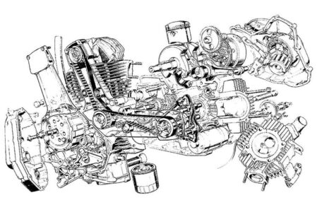 Ducati design maestro Dr. Fabio Taglioni recognized that his bevel-drive twins needed a replacement. His Pantah engines boasted modern plain-bearing con rods and a toothed reinforced-rubber belt and cogged pulleys to drive the single overhead camshafts. The belt-drive cams followed Moto Morini’s pioneering use of a Gilmer rubber belt to spin the cam on its pushrod V-twins. The result was a Ducati L-twin that ran quieter, was lighter, easier and cheaper to produce, and simpler to maintain, while delivering stout performance across a broad rev range. “Dr. T” also anticipated expanding the Pantah’s design bandwidth to incorporate larger and smaller displacements for future applications.