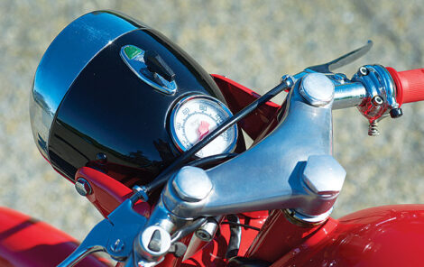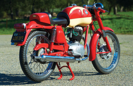 Grand Prix racing efforts are, of course, extremely expensive, and the money to fund the team originally came from profits earned by selling street two-wheelers. The first street bikes were two-strokes, a common configuration for inexpensive get-to-work motorcycles in Europe in the 1940s and early ’50s. A 125cc two-stroke with a three-speed gearbox followed in 1948. The 125 was upgraded in 1949 and now sported four gears forward. A scooter appeared the same year, soon available in a budget version for the cost-conscious signorina, and so did the Pullman, with 15-inch wheels for the person who wanted a scooter but had to ride over bad roads.