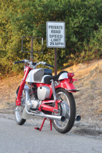 But before the paint dried on Jim’s “for sale” sign, Jeffray Fargher made haste from his home in Ojai, California, to Cambria a few miles up the coast to purchase the red CB92. Jeffray, a hardcore CB92 enthusiast, got his first glimpse of a Honda motorcycle as a youngster when he and his father attended the 1963 Oregon State Fair. The Honda display didn’t include a CB92, but the following day he and his dad visited the nearby Honda dealer — housed in a Massey Ferguson tractor dealership — to see what the Honda motorcycles were all about. The display included a CB92. Jeffray was hooked.