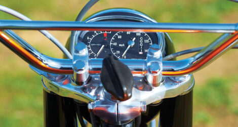 With the horn, tank, side covers and seat problems solved, the rest of the restoration consisted of a good polish, replacing the old fuel lines and an oil change. Baker says the bike runs great. He has ridden it for just a few blocks near his home, only enough to go through the four gears, but the tires are the 57-year-old originals, and the bike is so rare that if he broke anything, he probably couldn’t replace it. “Riding it is like riding a Bomber, but the off-road bars make you sit more upright.”