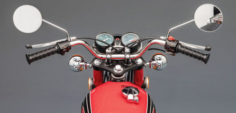 The engine was stripped to the last nut and bolt, with many new parts used in the rebuild. Many pieces can still be sourced from Honda, while other components are simply unavailable. In the reproduction world, Brady was often disappointed in what he could locate, saying the pieces, such as a repro seat pan, “Wasn’t even close to correct.” Mufflers, however, are replicas from David Silver Spares.
