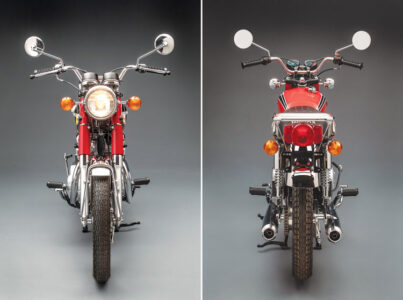 Other details, such as the new-old stock speedometer and tachometer, bring the overall restoration to a concours level. The Honda is finished factory-correct, although the ignition trigger is an upgrade from Charlie’s Place. The coils are Dyna and the charging system is from Rick’s Motosport Electrics.