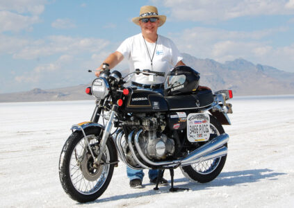 Indeed, 10 years ago, when that little Honda was already 40 years old, it carried me to an AMA national production classic class (350P/PC) land speed record. To my amazement, that record still stands 10 years later!