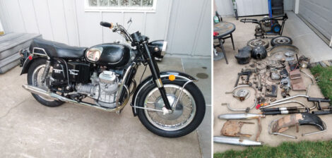 I’ve owned Moto Guzzis since I was 19 years old, but was in love with them since 1970, where a policeman in my neighborhood had a full dress Ambassador. I bought my Ambassador in 1975 and still own it, 100,000 miles on it. In 1987 I built my 850 T3 police special into a world-known Cafe Racer. It now has 138,000 miles on it. It’s the most photographed motorcycle at Daytona Bike Week because it sits on Main Street every night and people take pictures of it. It’s been there for 32 years and will be there in a week for Bike Week 2024. In 1998, I traded a 1991 Ducati 900SS for a slightly used 1997 Moto Guzzi 1100 Sport, it now has 115,000 miles on it. In 2004 at Mid-Ohio, I picked up a 1953 Moto Guzzi Astore. In 2022, I was lucky to get a 1938 all original Moto Guzzi S. I also have my 25-year-old minimalist project, a 1978 Moto Guzzi 850 T3 in the works! It’s a minimalist bike because the gas tank will be on my back!