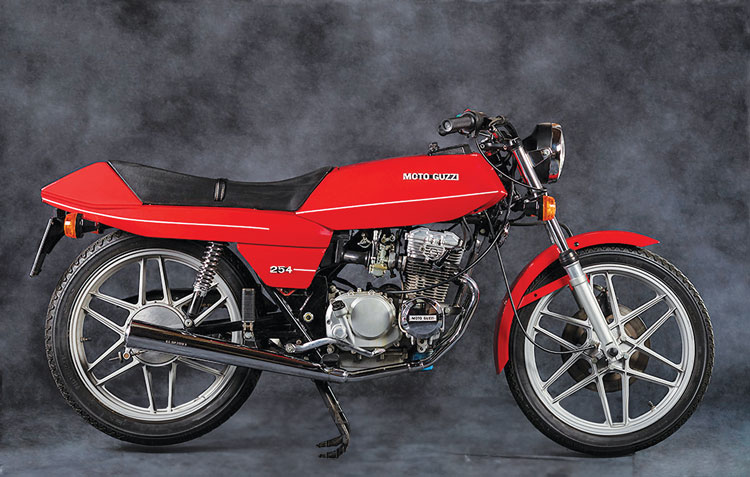 The U.K.’s Motorcycle News editor/writer Brian Tarbox traveled to Italy to do a first ride report on the 254 in 1977 and said that the tiny fuel tank was a problem: “As a result, the U.K. importers decided against bringing it to this country. However, it was a great little bike and I have great memories of riding it through the countryside of Northern Italy.” That was likely a factor against North American importation as well, as examples are very hard to find in the U.S. The little Guzzi is rare anywhere — reportedly, fewer than 1,000 of the Moto Guzzi version were produced.