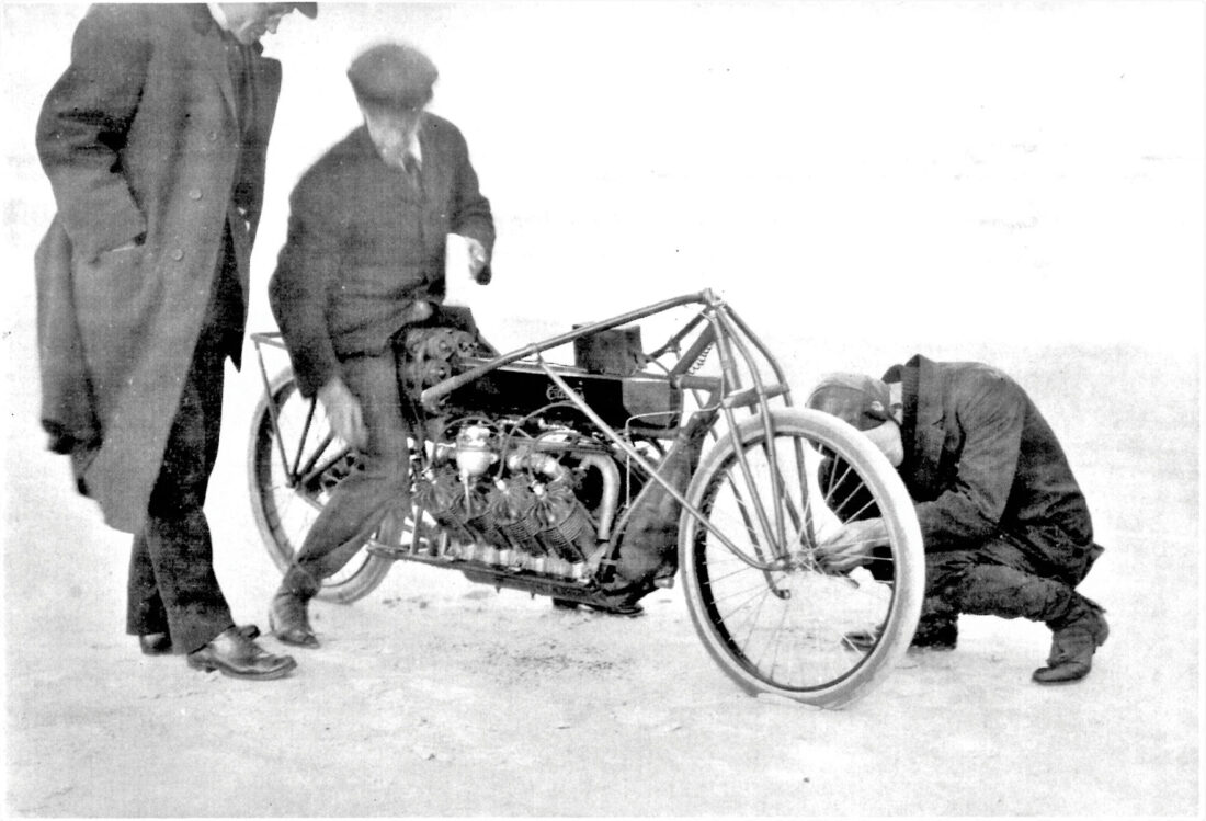 Accompanied by Tank Waters and Thomas Baldwin, Glenn would run the “freak bike” (a nickname given to it and others, not built for commercial sale) along with other Curtiss motorcycles for various trials at Ormond. Since the V-8 was untested, it proved to have a number of problems, so Glenn left it to Waters to work out the bugs while racing the other cycles first.