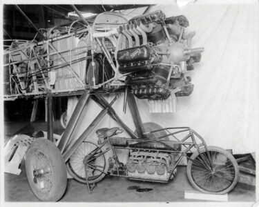 Clarence White, the Curtiss shop superintendent, was put in charge of assembling the air-cooled V-8 engines with Glenn’s input. The engine for C. O. Jones, once completed, was run on a test stand before being installed on the cycle frame and not tested again.