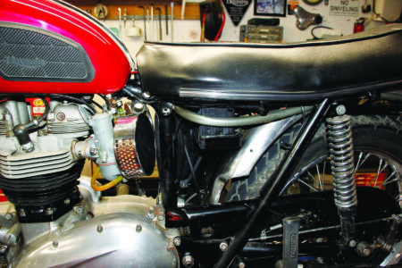 The best way to ensure that the oil stays clean is for the oil to run through a spin-on filter that can be changed on a regular basis. So for this How-To, we’re going to install an aftermarket oil filter kit from Legend Cycle (legendcycle.net) on this 1968 Triumph Bonneville so you never have to worry about the sludge trap again. Here’s a short link directly to the kit. A printed copy of the instructions comes with the kit, but it can also be found online at Legend Cycle if you’d like to read the instructions before purchasing it. There’s also a video done by Legend Cycle showing installation of the kit — Keith Fellenstein