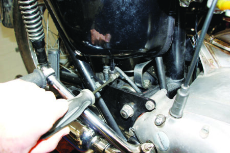 2. Of course, since this is a classic bike, you don’t want to mar the classic looks with an obvious modern add-on, so we start by hunting for an inconspicuous location for the mounting bracket.