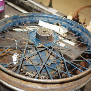To preserve the originality of a vintage motorcycle, you may wish to use the original rims, nipples, and spokes, replating or repainting the original components. That’s usually not the case, though, and when relacing a wheel, it’s always best to replace all spokes and nipples. You might be tempted to attempt replacing a single broken spoke, but Buchanan advises against that. I thought I had one broken spoke on a Harley years ago. Ken advised that I probably had two broken spokes (the one I knew about and another one 180 degrees away). I was certain he was wrong, but when I removed the wheel, I learned again that it’s best to listen to an expert. I had two broken spokes, just as Ken had predicted. Spokes and nipples are highly stressed components that experience millions of stress cycles through acceleration, braking, cornering, and simply rolling down the road. These parts are susceptible to fatigue and stress corrosion, as well as other forms of corrosion.