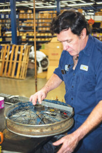During a recent visit to Buchanan’s Spoke and Rim in Azusa, California, Ken Buchanan walked me through the wheel lacing procedure. There’s more to the procedure and wheel technology than I had imagined.