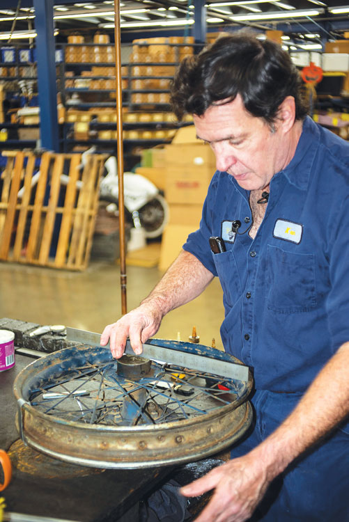By way of an introduction, Buchanan’s Spoke and Rim in Azusa, California, has been around since 1958, and for anything related to spokes, rims, or wheel building, they are the “go-to” place. I’ve always been impressed by (in awe of, actually) Kenny Buchanan, his brother Robert, and the Buchanan staff. Buchanan’s can provide replacement spokes for any motorcycle in both stock and increased diameter configurations. They excel in wheel building and rebuilding. Bring a hub, a rim, or a wheel, select a spoke configuration, and Buchanan’s will make it happen. If you are resurrecting a vintage motorcycle and want to bring it back to original specifications, if you are building a custom bike, or if you simply need to replace the spokes (note the plural, which will be explained shortly), Buchanan’s is the place to go. Buchanan’s provides stock and custom spokes, including increased diameter, stainless steel, twisted, diamond, rippled, or bladed configurations. Buchanan’s also makes custom aluminum rims in several different finishes, which they can lace to your stock hub. Everything is manufactured onsite in the company’s Azusa, California, factory. With that as an introduction, let’s get into the “how-to” in lacing a wheel.