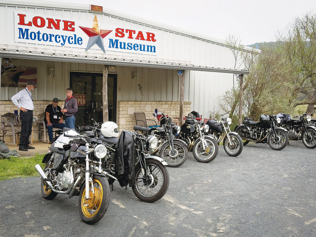The final day of the rally featured a group ride to Fredericksburg, about 25 miles away, to take part in The Texas Fandango event, where VOC members were given preferred placement in the show field — a fitting finale to a week of two-wheeled celebration. Produced by the Cherokee Chapter of the Antique Motorcycle Club of America, The Texas Fandango features a swap meet and a bike show.
