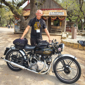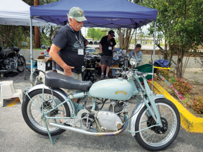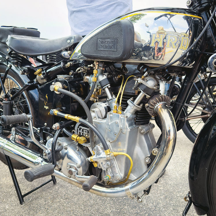 Keith Martin of Big D Cycles in Dallas brought a pair of standout machines, including a blue Rapide that won “People’s Choice” at the 2023 International Rally in California. Big D has a long and distinguished history of building record-setting British motorcycles, including the famous “Texas Ceegar” Bonneville streamliner, and is currently the go-to shop for Vincent restoration and repair. Keith is a strong and active supporter of owner’s clubs like the Vincent Owners Club and the North Texas Norton Owners Association. Without shops like Big D and part suppliers like Coventry Spares in Massachusetts, it would be much harder to keep the old Vincents on the road.