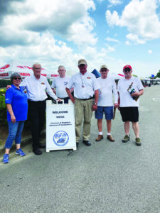 Most of the team that created the Concours. From left to right: Evelyne Clarke, CEO WERA Roadracing; George Barber, founder of Barber Motorsports Park and Museum; Ron Raven, organizer; Jeff Ray, executive director of the Barber Museum; Brian Slark, museum restoration specialist and chief judge; Guy Reynolds, museum lecturer and second judge. Missing from photo are Mitch Cato, tech inspector and Bill Wilder, paddock marshal.