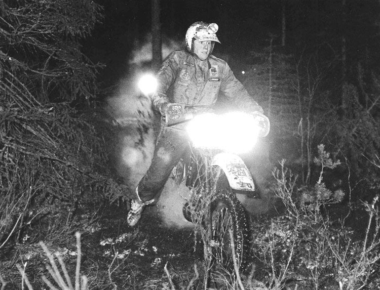 One of America’s top enduro riders, Dick Burleson, shared a similar experience during the 1980 Novemberkåsan when he became the first American to enter the Swedish enduro that originated back in 1915. At the end of the 250-kilometer enduro, Burleson finished first in the 1980 International Class, which is another way of saying entries were limited to non-Swedish riders for that particular class — and by chance, there were no other non-Swedes entered at all. As Burleson commented after completing his five 50-kilometer loops, “I was the only entry [in the International Class]!” Still, the fact remains that just finishing the Novemberkåsan is much of the battle.