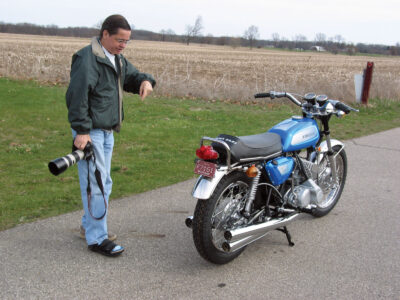 Marilyn Stemp was the editor of IronWorks Magazine, a publication that failed to survive the stampede to digital publication. She says, “Back in the days when a plethora of print media sumptuously covered motorcycling from every angle, editors were inundated by contributors who wanted page space for their words and images. Editors had tons of options and, speaking for myself, I worked with people I could count on. For decades, Doug Mitchel was one of them: always offering bikes that fit the IronWorks paradigm, turning in stellar images and doing so on time. Doug persisted in pleasant and pre-emptive professionalism, often sending a sample image when he discovered an “IronWorks Bike” on his travels. He was an unpaid scout when we couldn’t afford one! Doug’s unique personality infused our work exchanges with off-beat sidebars and perspective. His pervasive positivity was contagious — and legendary. Anyone who had the happy occasion to work with Doug knows this.”